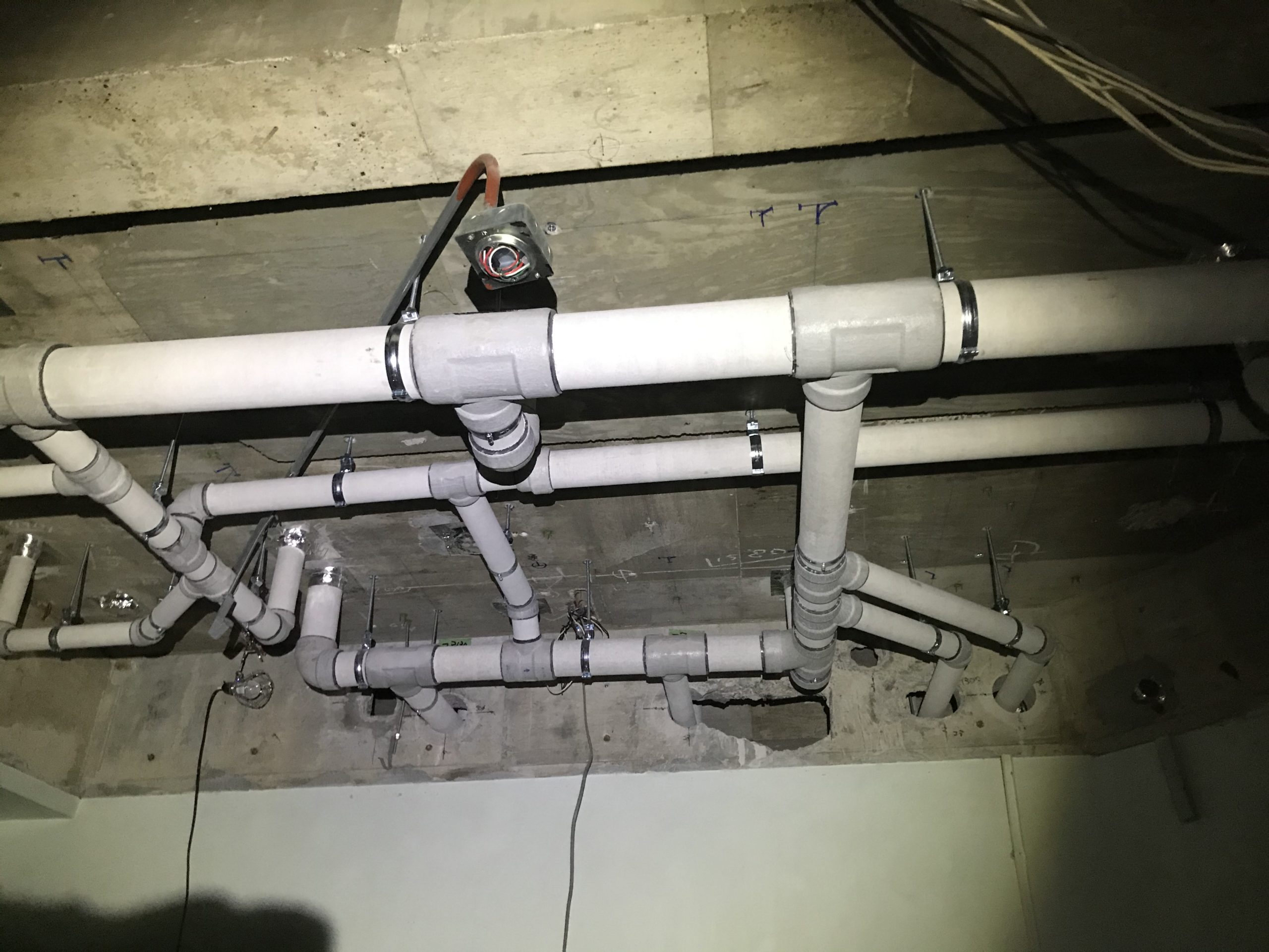 【施工実績】船橋市立某小学校 天井配管、ピット配管施工状況