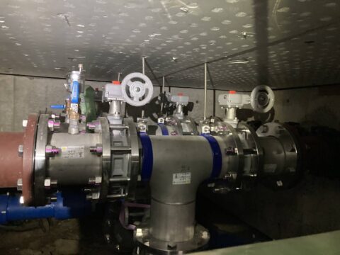 ピットの入り口の狭さから管材搬入は人通口から行ない、その過程も含め、専門的技術を要する大変な作業でした。