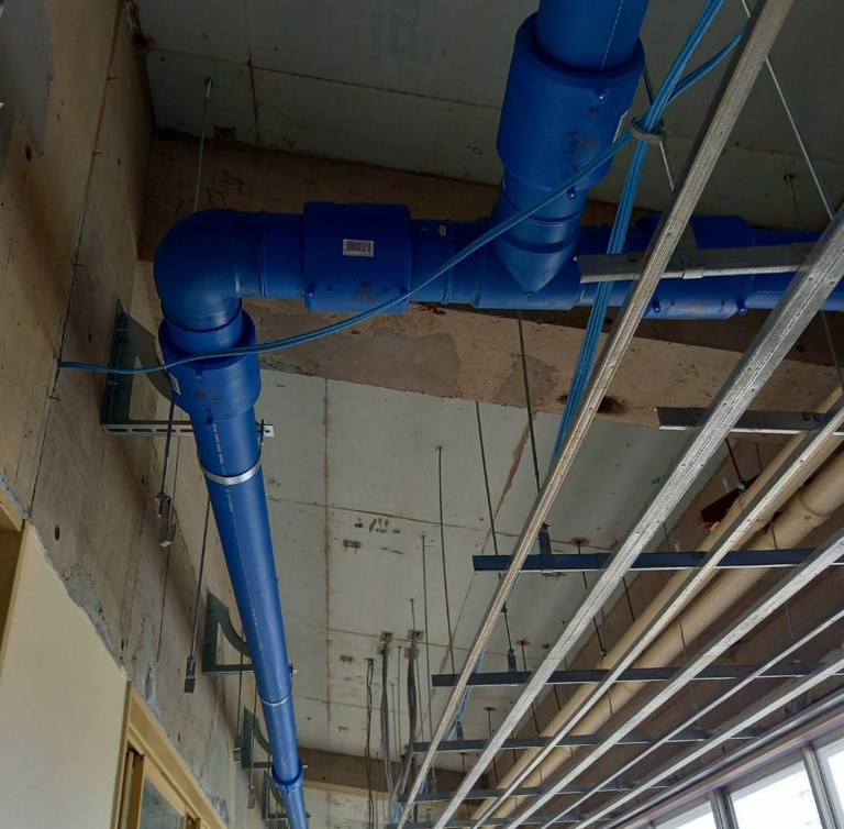 防火認定を受けた専用配管材(積水化学・タイカBP製グリーン配管)を使用し、安全性を確保しながら施工を完遂しました。